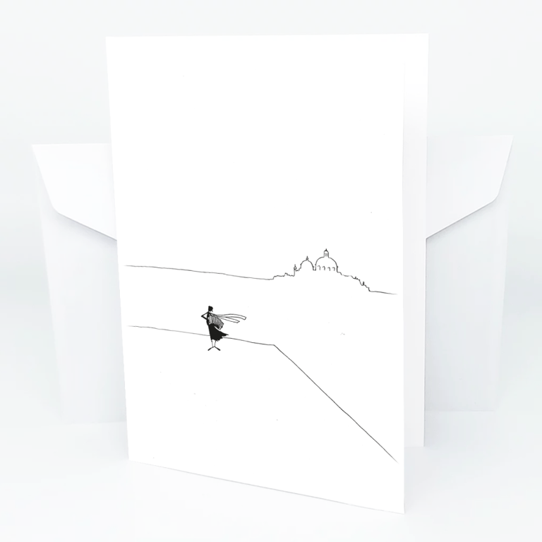 Die Vorderseite dieses Billets im Postkarten-Format zeigt das Motiv, am unteren Rand der Rückseite ist klein mein Logo aufgebracht. Die Innenseiten sind weiß und mit allen Schreibgeräten beschriftbar. Du erhältst dieses Billet zusammen mit einem passenden weißen Kuvert in einer transparenten Schutzhülle konfektioniert.
