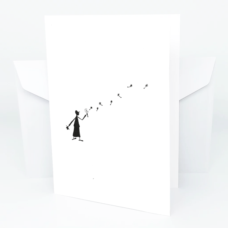 Die Vorderseite dieses Billets im Postkarten-Format zeigt das Motiv, am unteren Rand der Rückseite ist klein mein Logo aufgebracht. Die Innenseiten sind weiß und mit allen Schreibgeräten beschriftbar. Du erhältst dieses Billet zusammen mit einem passenden weißen Kuvert in einer transparenten Schutzhülle konfektioniert.