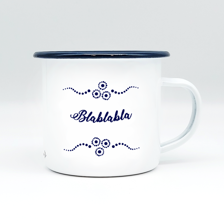 Mit dem dunkelblauem Rollrand und dem stilisierten Blumen-Dekor im rustikalen Vintage Design scheint diese emaillierte Blechtasse aus einer längst vergangenen Zeit zu stammen und liegt damit gerade wieder voll im Trend.