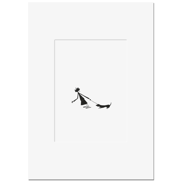 Die Motive für diese Serie zeichne ich mit Spitzfeder und Tusche auf speziellem Zeichenkarton. Dabei versuche ich, die Szene auf ein Minimum zu reduzieren und die Komik der Situation mit möglichst wenigen, klaren Strichen festzuhalten.