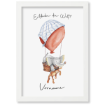 Außerdem kannst Du die Farbe des Luftballons selbst bestimmen und wählen, ob Du das Bild als Poster oder bereits fix fertig im Wechselrahmen in den Farben Matt Weiß oder Matt Schwarz erhalten möchtest.