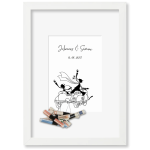 Du erhältst das Bild (Bildgröße ca. 20×30 cm) fix fertig gerahmt (Rahmengröße ca. 23×32 cm). Die Wechselrahmen in den Farben Matt Weiß, Matt Schwarz oder Birke Immitat verfügen über eine Aufhängevorrichtung für die Wandmontage und einen ausklappbaren Stellfuß zum Aufstellen.