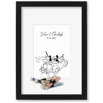 In die sechs kleinen schwarzen Röhrchen, die an Fäden in das Bild eingearbeitet sind, schiebst Du dünn zusammengerollt die einzelnen Geldscheine – und fertig ist Dein einzigartiges Geldgeschenk! Wird das Geld diesen Röhrchen entnommen, erinnern sie an die Blechdosen, die die Fahrt im “Just Married”-Cabrio mit lautem Scheppern begleiten.