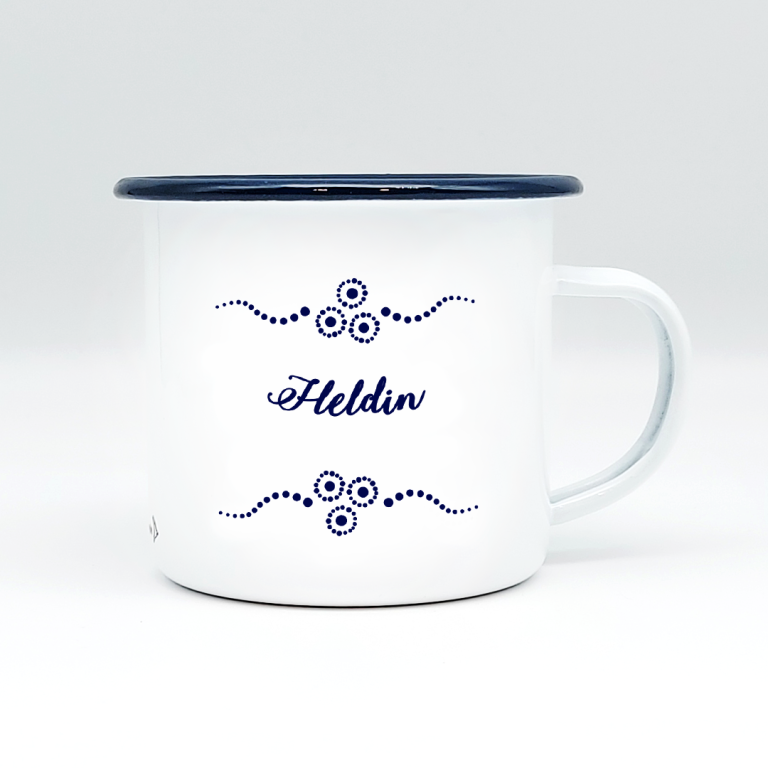 Mit dem dunkelblauem Rollrand und dem stilisierten Blumen-Dekor im rustikalen Vintage Design scheint diese emaillierte Blechtasse aus einer längst vergangenen Zeit zu stammen und liegt damit gerade wieder voll im Trend.