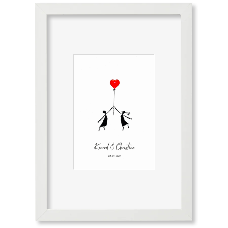 Die mit Liebe handgezeichneten Bilder werden für Dich qualitativ hochwertig auf alterungsbeständigem 220g/m² schwerem, griffigem und starkem Zeichenkarton mit feinrauer Oberfläche unter Verwendung hochwertiger lichtechter und wischfester Pigmenttinten reproduziert, eigens für Dich nach Deinen Vorgaben personalisiert und signiert.