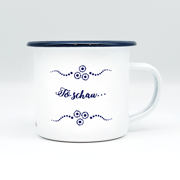Egal, wo Du gerade bist – diese witzige Emaille-Tasse ist Dein treuer Begleiter beim Wandern, Campen und im Urlaub!