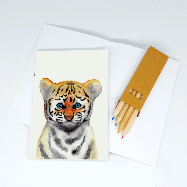 Dieses klammergeheftete Notizheft mit dem entzückenden Motiv aus meiner Aquarell-Serie “Tierkinder” auf dem Umschlag aus naturweißem Aquarellkarton umfasst 32 hochweiße Innenseiten mit ausreichend Platz für Skizzen, Notizen, Zeichnungen und Gedanken.