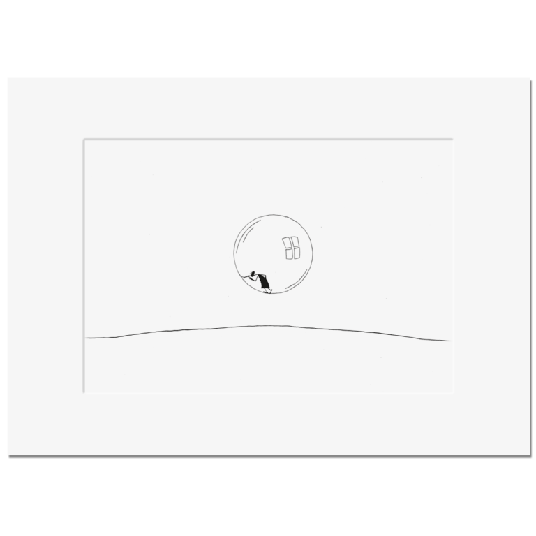 Die Motive für diese Serie zeichne ich mit Spitzfeder und Tusche auf speziellem Zeichenkarton. Dabei versuche ich, die Szene auf ein Minimum zu reduzieren und die Komik der Situation mit möglichst wenigen, klaren Strichen festzuhalten.
