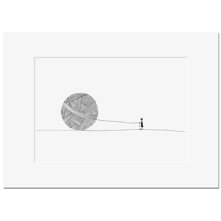 Die Motive für diese Serie zeichne ich mit Spitzfeder und Tusche auf speziellem Zeichenkarton. Dabei versuche ich, die Szene auf ein Minimum zu reduzieren und die Komik der Situation mit möglichst wenigen, klaren Strichen festzuhalten.